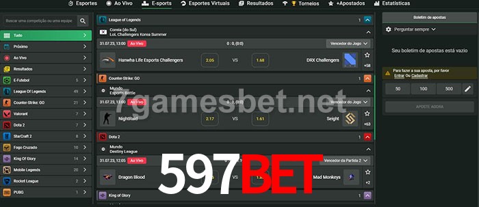 O 597bet oferece uma grande seleção de opções de apostas em e-sports com probabilidades competitivas